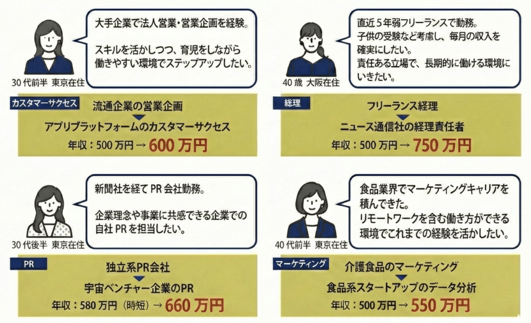 - 経験を活かして今のあなたが力を発揮できる環境を提案します。